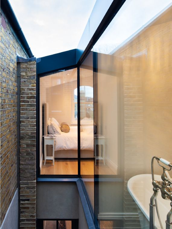 The re-modelling of this Victorian mid terraced property is full of unique design features from the glazed re-entrant corners to the duo pitched vaulted roof in the master suite. The engineering looked to minimise structural build-ups providing an elegant design solution maximising floor to ceiling heights at ground and first floors.