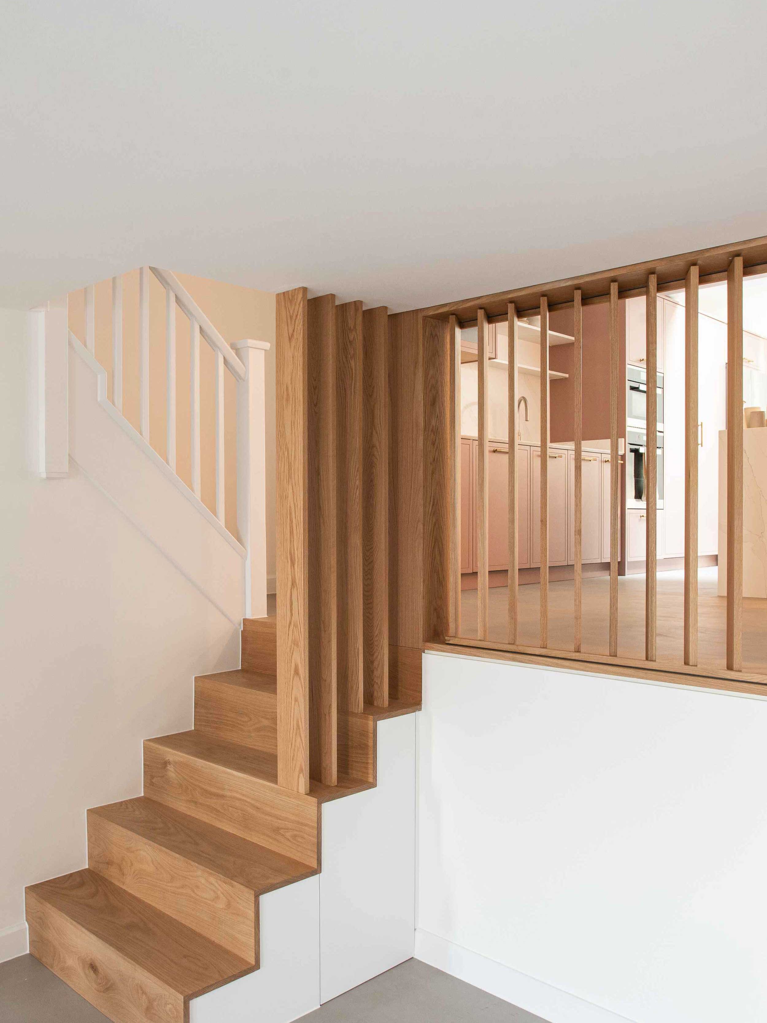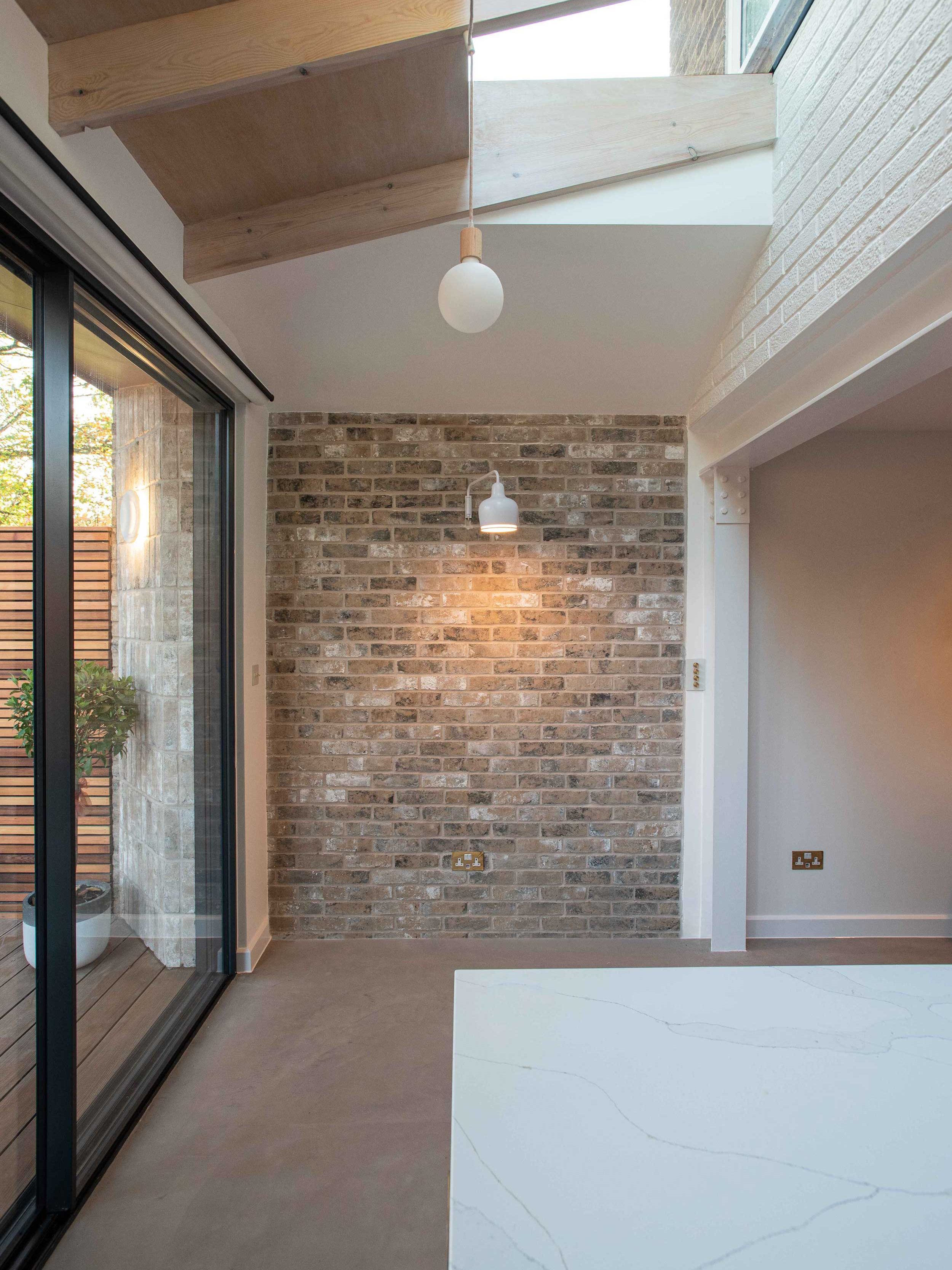 The new steel framing elements and timber roof joists were left exposed to showcase the structure which worked beautifully with the minimalist interior design, whilst the new rear elevation features a bespoke brick on edge detail providing a unique finish.