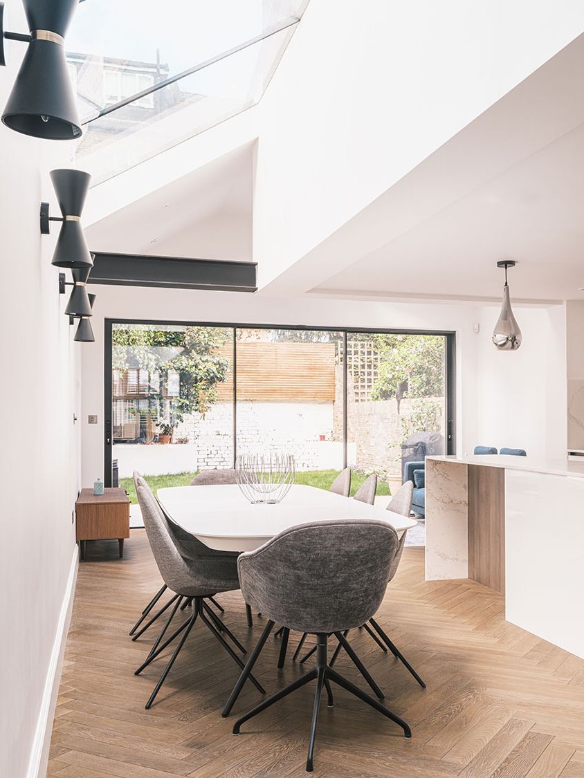 A full renovation and extension of this stunning home. This project involved a complete transformation, including a loft conversion, wraparound extension, and a fully open-plan ground floor. The seamless flow is enhanced by sleek sliding doors and strategic structural openings. Externally, charred timber cladding adds a modern, textured detail. Stepping inside, Crittall glazing plays a key role in retaining the open-plan feel while subtly defining different living spaces.