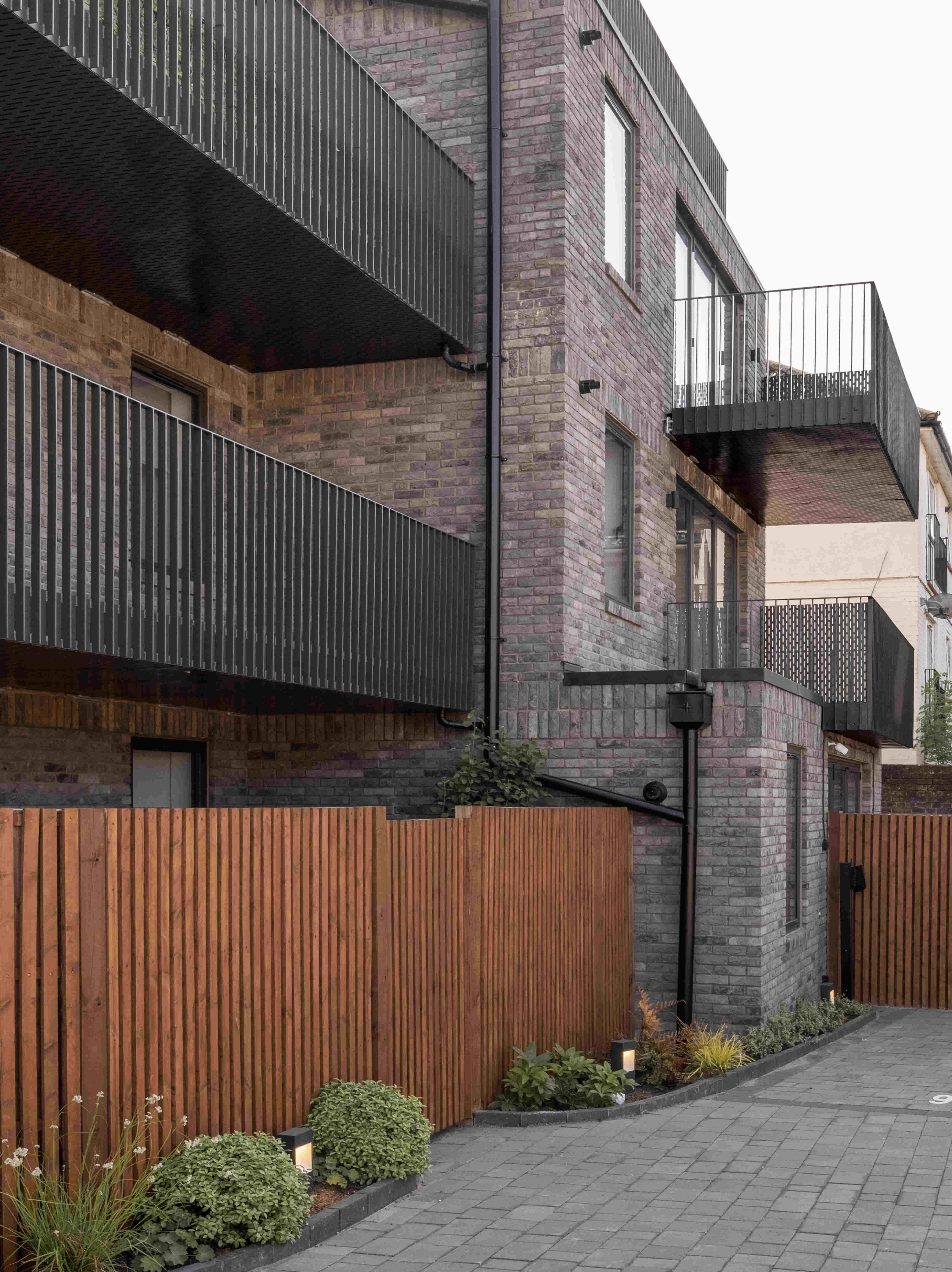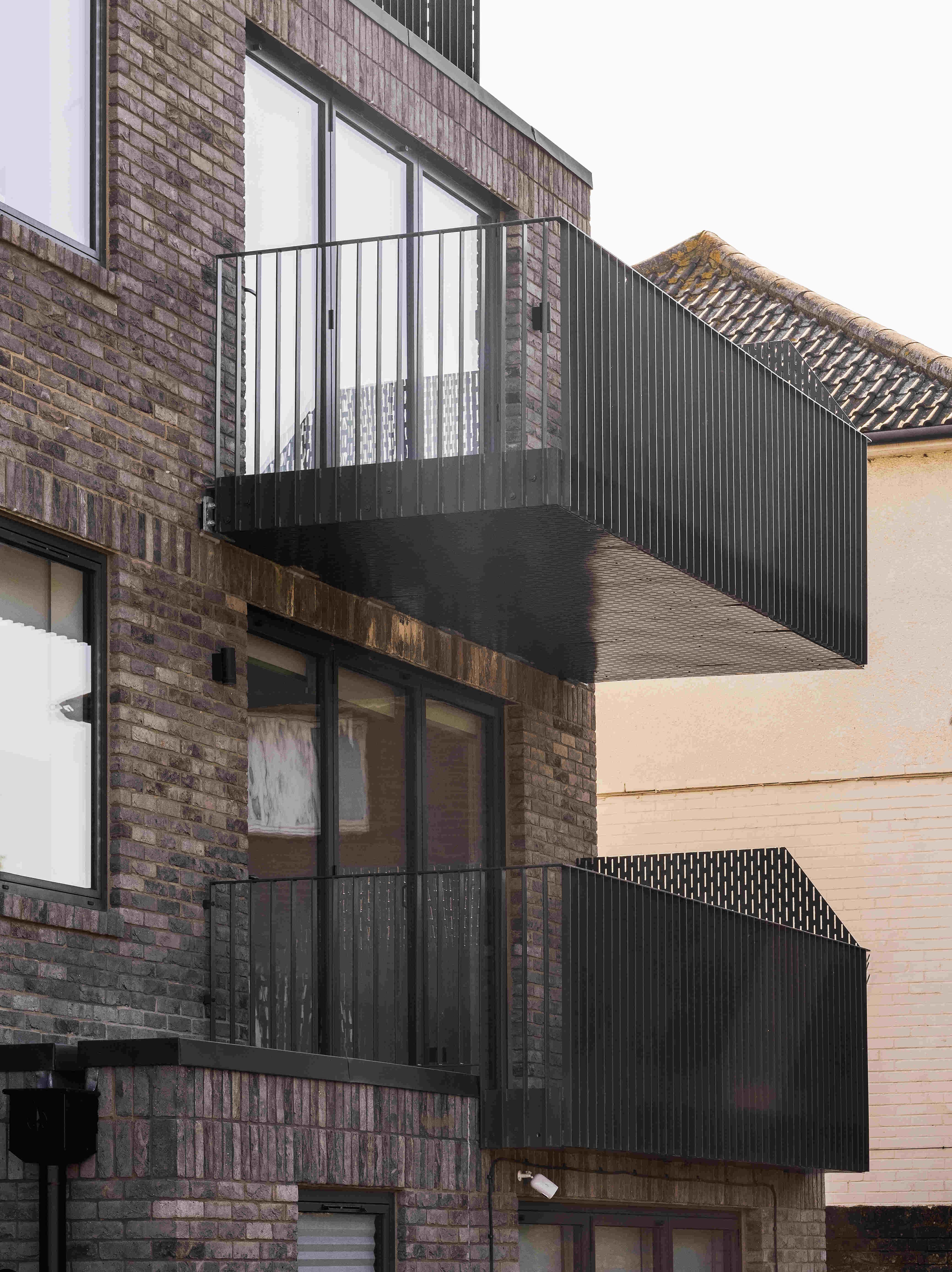 These cantilevered balconies provide excellent outdoor amenities at this recently completed development in Wimbledon.