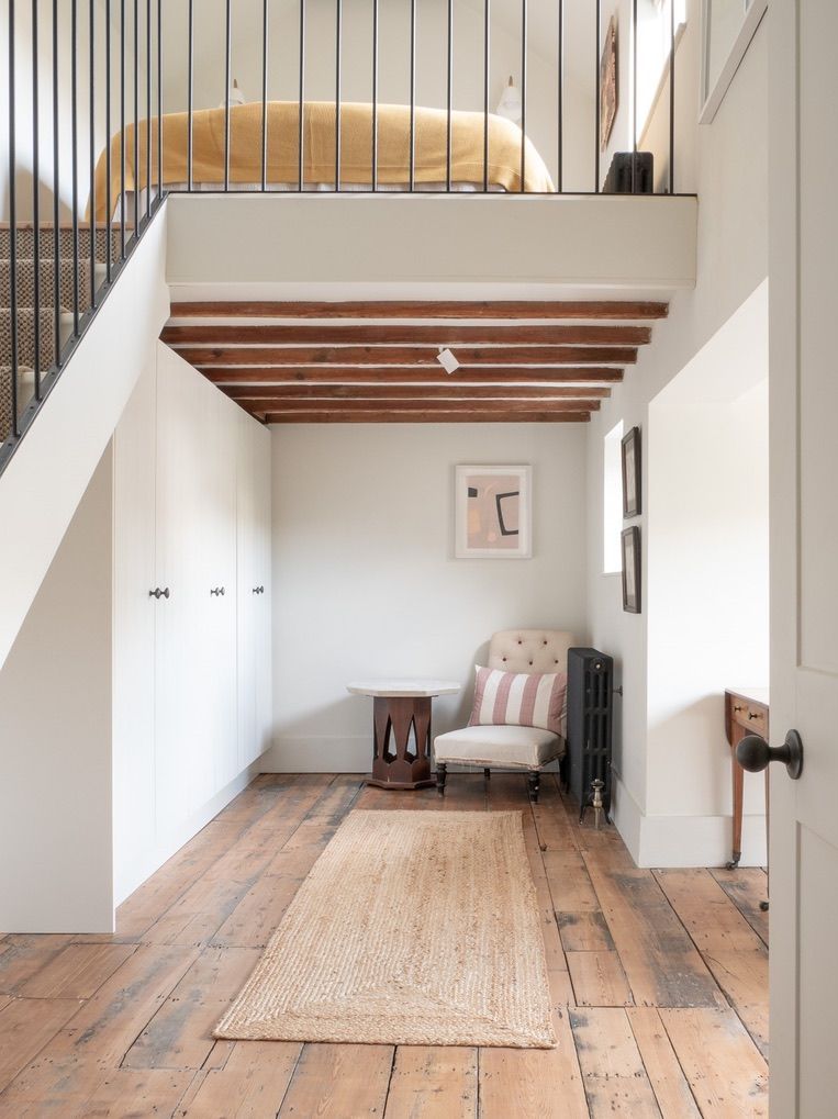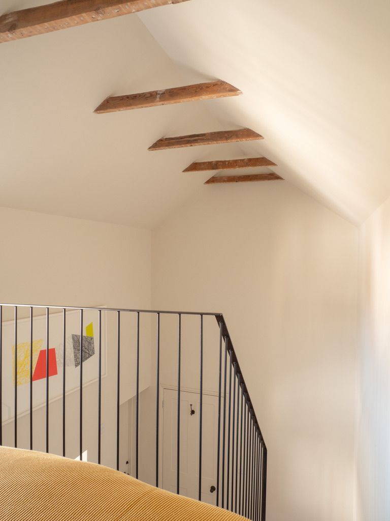 One area that worked exceptionally well was in the rear where to maximise floor to ceiling height in the mezzanine and to give a vaulted feel, the existing ceiling joists were retained and reused forming collars to prevent splaying to the rafters.